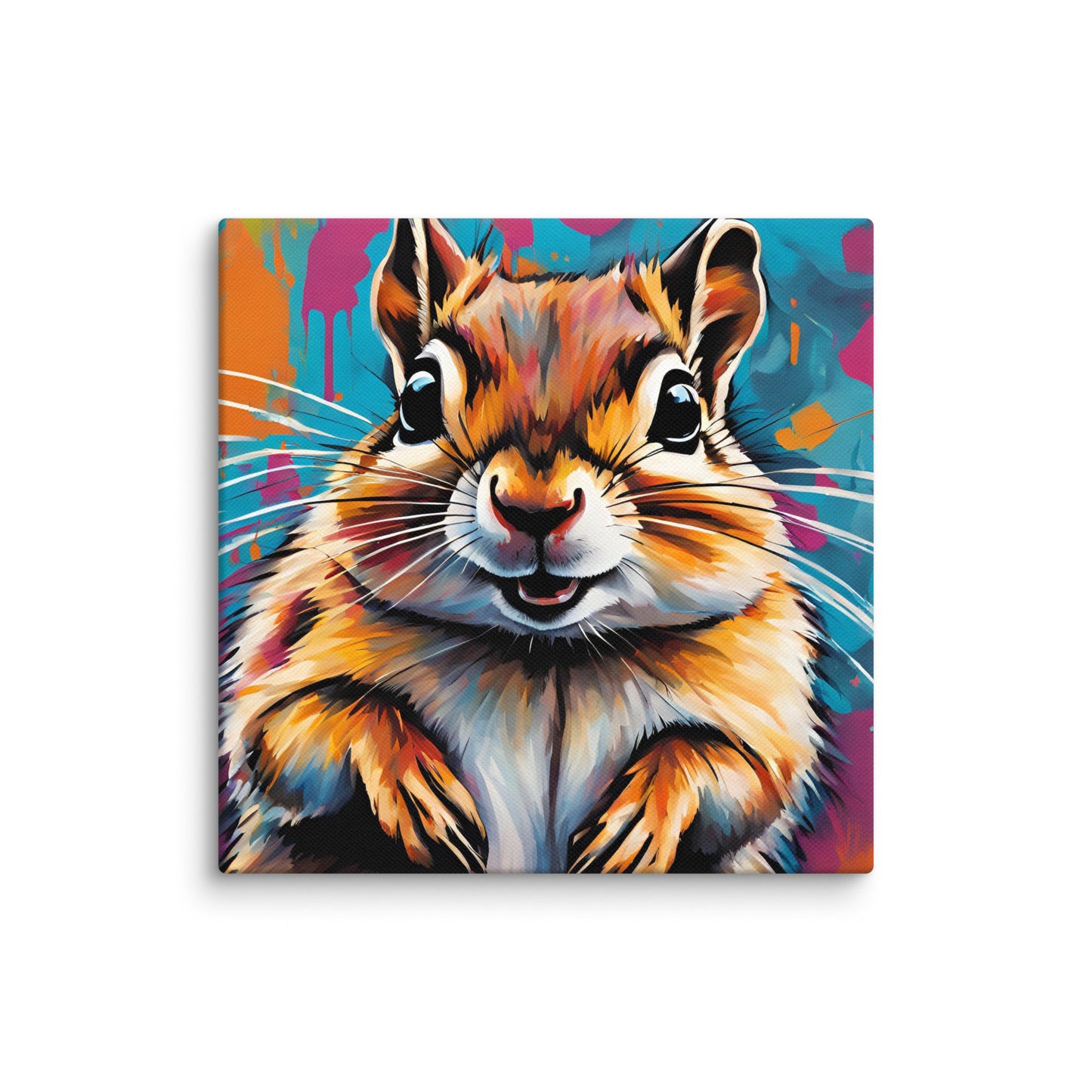 The artistic rendering titled "chimpunk" captures the vibrant essence of this striking chimpunk in a mesmerizing display of color and form. The artist skillfully uses a palette of rich blues, soft whites, and subtle grays to bring the chimpunk to life, highlighting its distinctive plumage and sharp gaze. Set against a backdrop of lush greenery, the chimpunk perches gracefully on a slender branch, exuding an air of elegance and curiosity. The intrichimpunke details and dynamic composition invite viewers to appreciate the beauty and vitality of nature. A canvas is a statement piece and artwork all in one. Transform your walls with our high-quality prints into eye-popping art on this acid-free, PH-neutral, and fade-resistant canvas. Put the artistry on your wall without a worrythis canvas comes with mounting brackets.